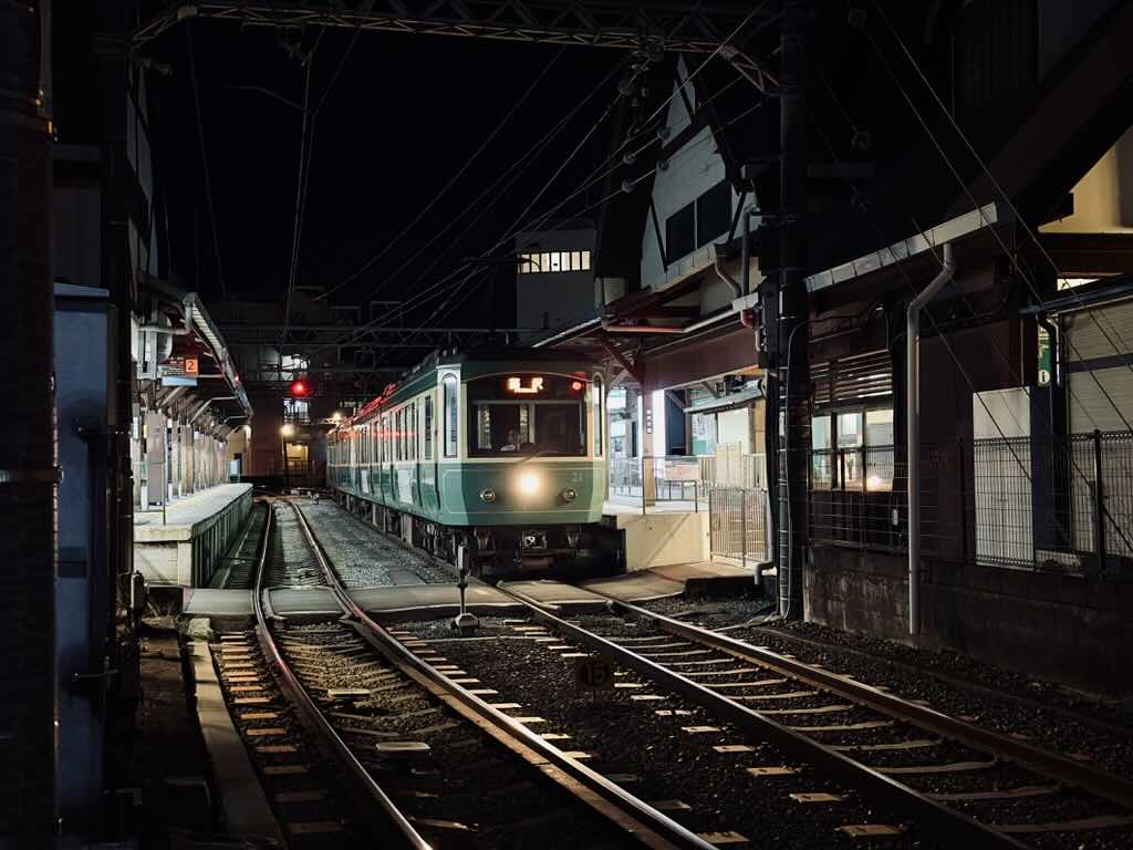 낮에는 관광객으로 붐볐을 거리와 역 주변이었지만, 밤이 되자 그 모든 소음이 깔끔하게 걷혀 있었다. 대신 에노덴이 철길을 따라 지나가는 소리, 멀리서 들려오는 열차의 진동, 그리고 바다 쪽에서 불어오는 차분한 바람이 이 공간을 채우고 있었다.