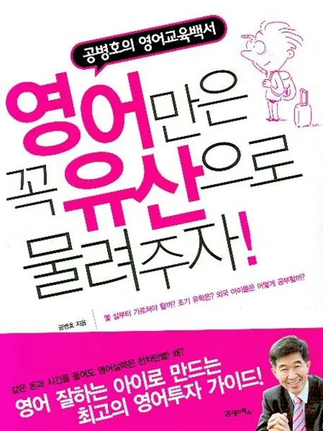 공병호 교수의 영어만은 꼭 유산으로 물려주자는 책은 제목에서 소개하고 있는대로, 자녀의 효과적인 영어 학습에 대한 방법과 내용을 소개하고 있는 책이다. 자신의 교육에 대한 노하우와 다른 나라의 효과적인 사례 등을 바탕으로 설명하고 있는 책으로 2006년에 출간된 책이지만, 지금 보아도 충분히 도움이 되는 내용을 찾을 수 있을 것이다.