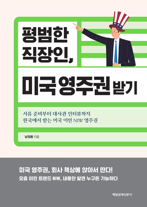 이 책은 필자가 접해본 책 중에서 미국 영주권을 받는 과정에서 대해서 최대한 자세히 설명하고 있는 책이다. 물론, 책의 제목과 같이 “평범한 직장인”이 미국 영주권을 받는 방법은 아니고, 아주 열심히 산 특별한 직장인이 미국 영주권을 “NIW”를 통해서 받는 방법에 대해서 설명하고 있는 책이다.