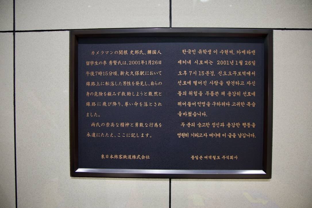 이수현 씨는 2001년 1월 26일, 이 신오쿠보역 선로에 떨어진 일본인을 구하려다 목숨을 잃은 한국인 유학생이다. 위험한 상황임을 알면서도 망설이지 않고 선로로 내려갔고, 그 선택은 끝내 되돌릴 수 없는 희생으로 이어졌다. 이 사건은 당시 일본 사회에도 큰 울림을 주었고, 그의 용기와 행동은 지금까지도 한·일 양국에서 기억되고 있다.