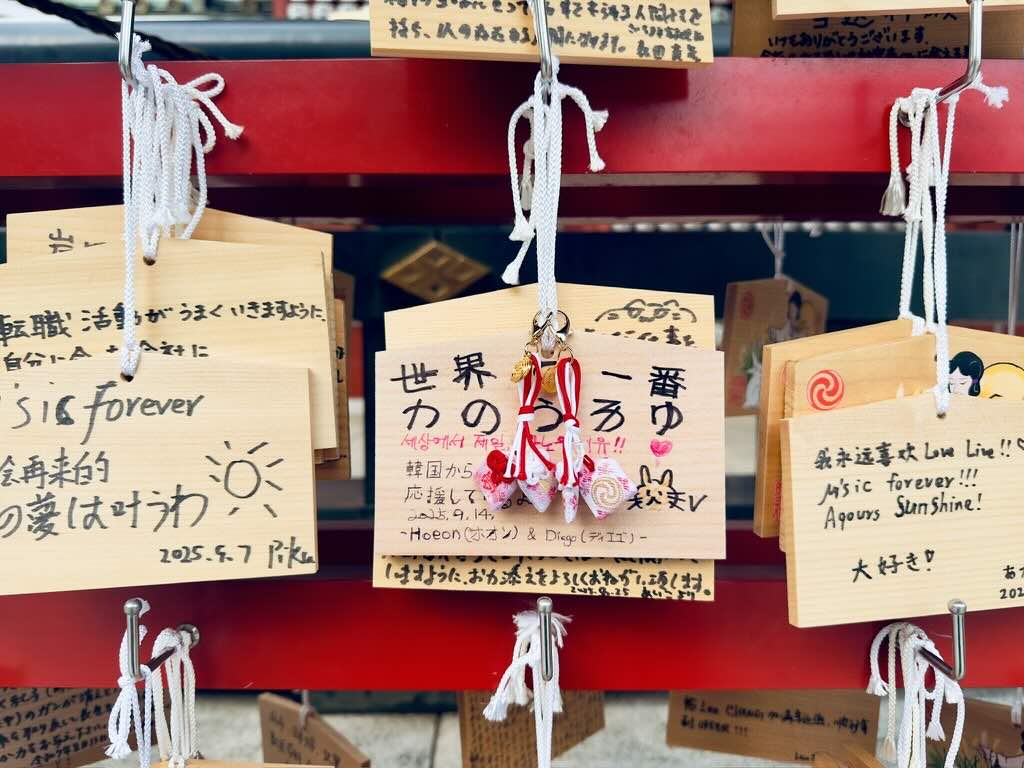 에마를 걸어두고 주변에 걸린 다른 사람들의 소원을 잠시 바라보다가 다시 발걸음을 옮겼다. 전날의 아쉬움이 정리된 느낌이었고, 이번 여행에서 가장 조용하게 머물렀던 시간이었다. 그렇게 우리는 신사를 나와 다음 장소로 이동하기 시작했다.