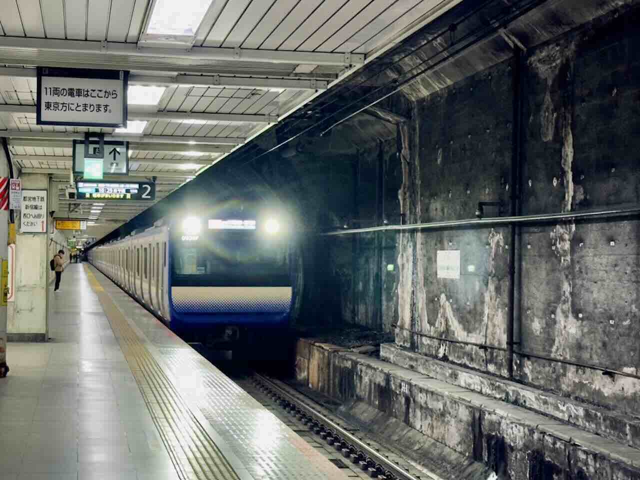 플랫폼 자체는 깔끔하게 정비되어 있었지만, 열차가 드나드는 선로 쪽을 바라보면 묘하게 음침한 분위기가 감돌았다. 밝고 세련된 도쿄의 이미지보다는, 오래된 지하 공간 특유의 차가운 공기와 그림자가 느껴지는 곳이었다. 괜히 포스트아포칼립스 같은 단어가 떠오를 정도로, 분위기만큼은 꽤 인상적인 역이었다.