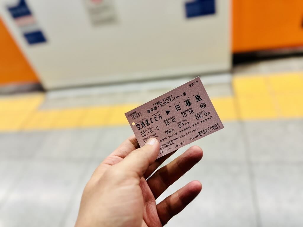 나리타 공항 제2터미널 → 닛포리역, 스카이라이너 탑승