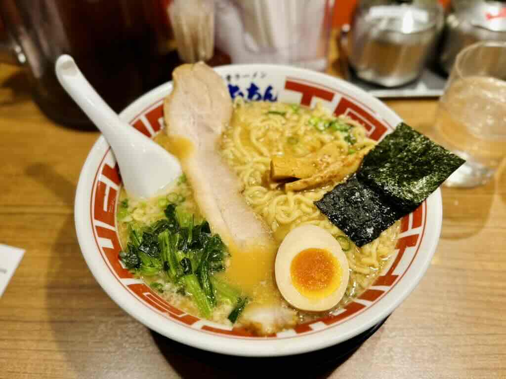 자리에 앉아 바 형태의 좌석 너머 오픈 키친을 바라보며 잠시 기다리자, 라멘이 도착했다. 첫 인상은 국물의 색과 점도에서부터 전해졌다. 한 숟갈을 떠 입에 넣는 순간, 이 집의 강점이 분명해졌다. 국물은 진했지만 과하지 않았고, 꾸덕한 질감이 혀에 남았다. 돼지뼈 특유의 깊이가 분명했지만 잡내 없이 정리된 맛이었다. 고명과의 조합도 좋았다. 늦은 시간임에도 불구하고 한 그릇을 비우는 데 망설임이 없었다.