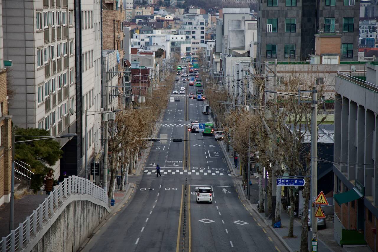 서울 연희동 증가차도 육교 — 육교에서 내려다본 오후의 풍경