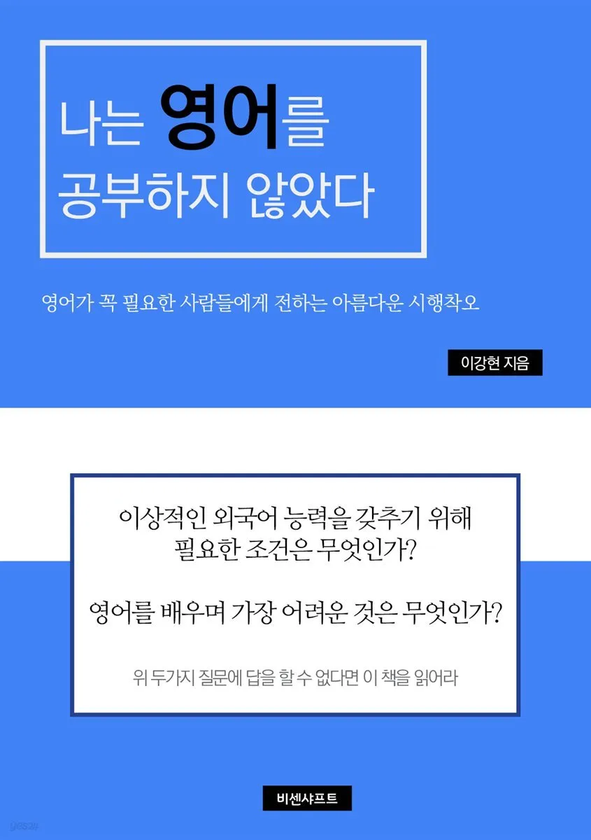 이강현 작가의 ”나는 영어를 공부하지 않았다“라는 책은 국내에서 치열하게 영어를 공부해서, 영어로 인해서 더 이상 스트레스를 받지 않을 정도로 자유롭게 영어로 소통하는 수준에 오르는 과정을 그려내고 있는 책이다.