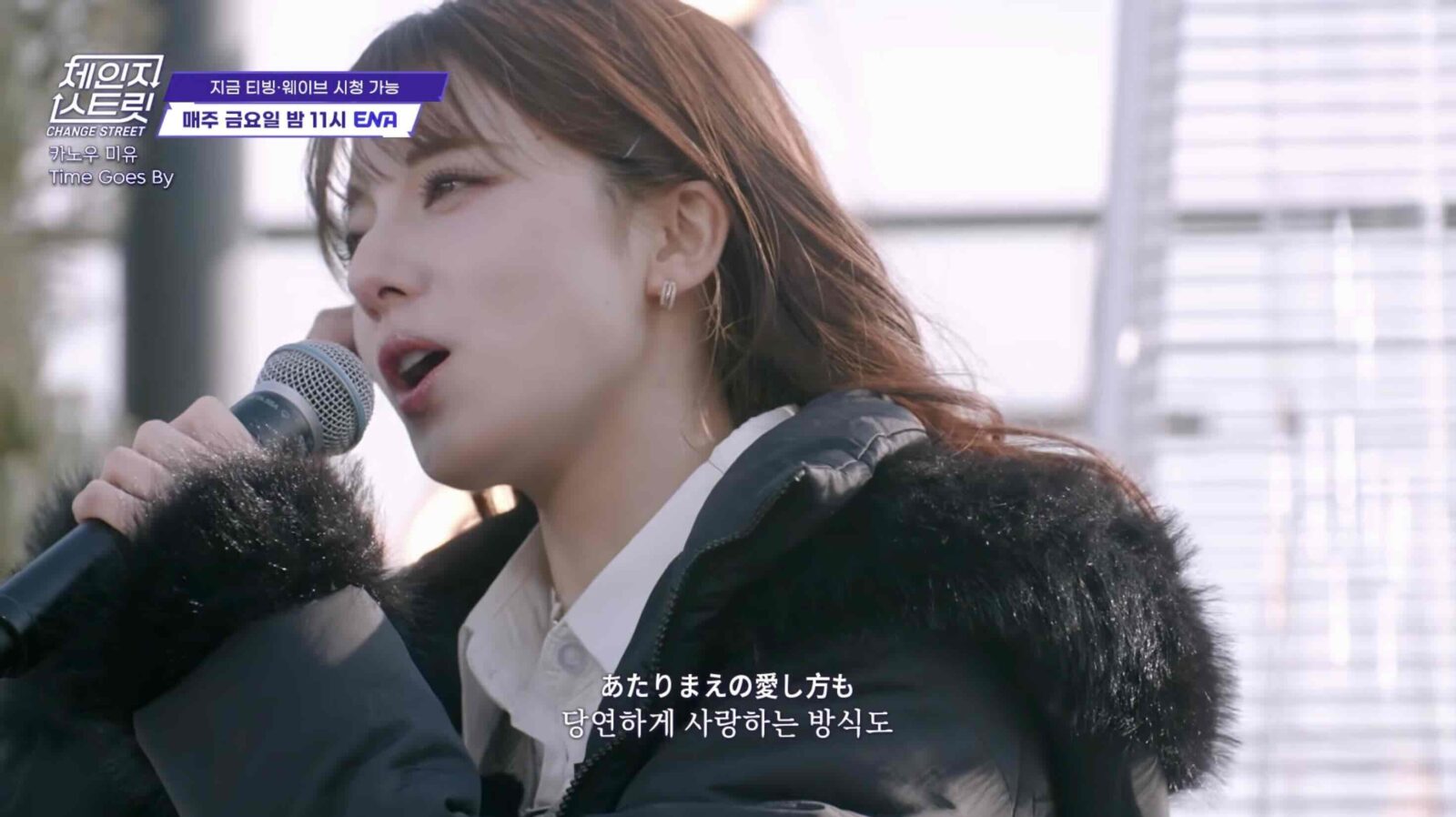 ‘체인지 스트릿’에서 카노우 미유의 첫 장면은 홍대 루프탑에서 시작된 버스킹이었다. 스튜디오가 아니라 실제 도시의 공간에서 시작된 공연이라는 점, 그리고 관객과 매우 가까운 거리에서 노래가 시작된다는 점은 이 프로그램이 어떤 방식으로 가수를 보여주려 하는지를 비교적 분명하게 설명해 주는 장면이었다. 완성된 공연을 먼저 제시하는 프로그램이라기보다 음악이 공간 속에서 어떻게 시작되는지를 보여주는 구조에 가깝기 때문이다.
