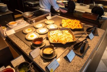 뷔페에는 일본식과 서양식 메뉴가 함께 준비되어 있었다. 밥과 된장국, 생선구이 같은 일본식 메뉴와 빵, 샐러드, ...